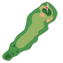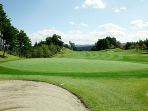 比較的短めのミドルホール。 スライスのでる人は右側OBに要注意。 グリーンは馬の背になっておりアプローチやパットは慎重にしましょう。
