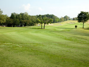 右ドッグレッグのロングホール。 ティショットはフェアウェイ左側狙い。 右側下の林はトラブルになるので要注意。 セカンドは前の松の木をさけ、100ヤード地点に3打目パーオン狙い。