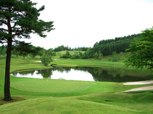 特設ティ:前進3打 グリーン手前まで大きな池越えのショートホール。 スコアメイクを考えるなら、グリーン右サイドより2オン1パット狙いで。 ティショットが池に入って特設ティを使用するときは、前進3打目。